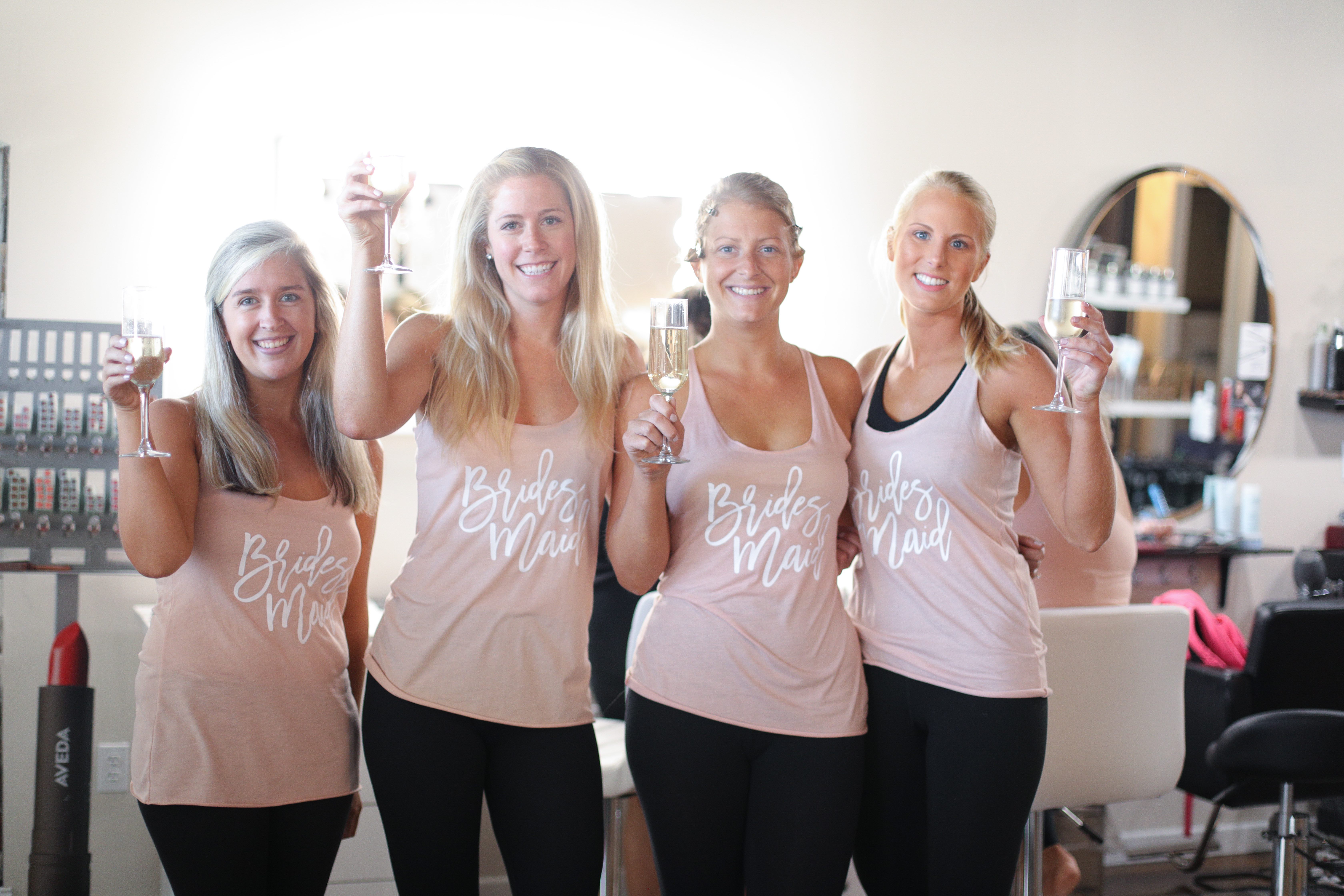 We do have a regime for brides that we follow however, things are always catered to the brides needs and wants so everything is always a little different. We start with the trial hair and makeup and once weve found what the bride loves, we take photos to replicate it on the big day! With our bridal parties, we offer different packages for everyone and allow them to bring in whatever foods, drinks, decorations or activities that they'd like!
