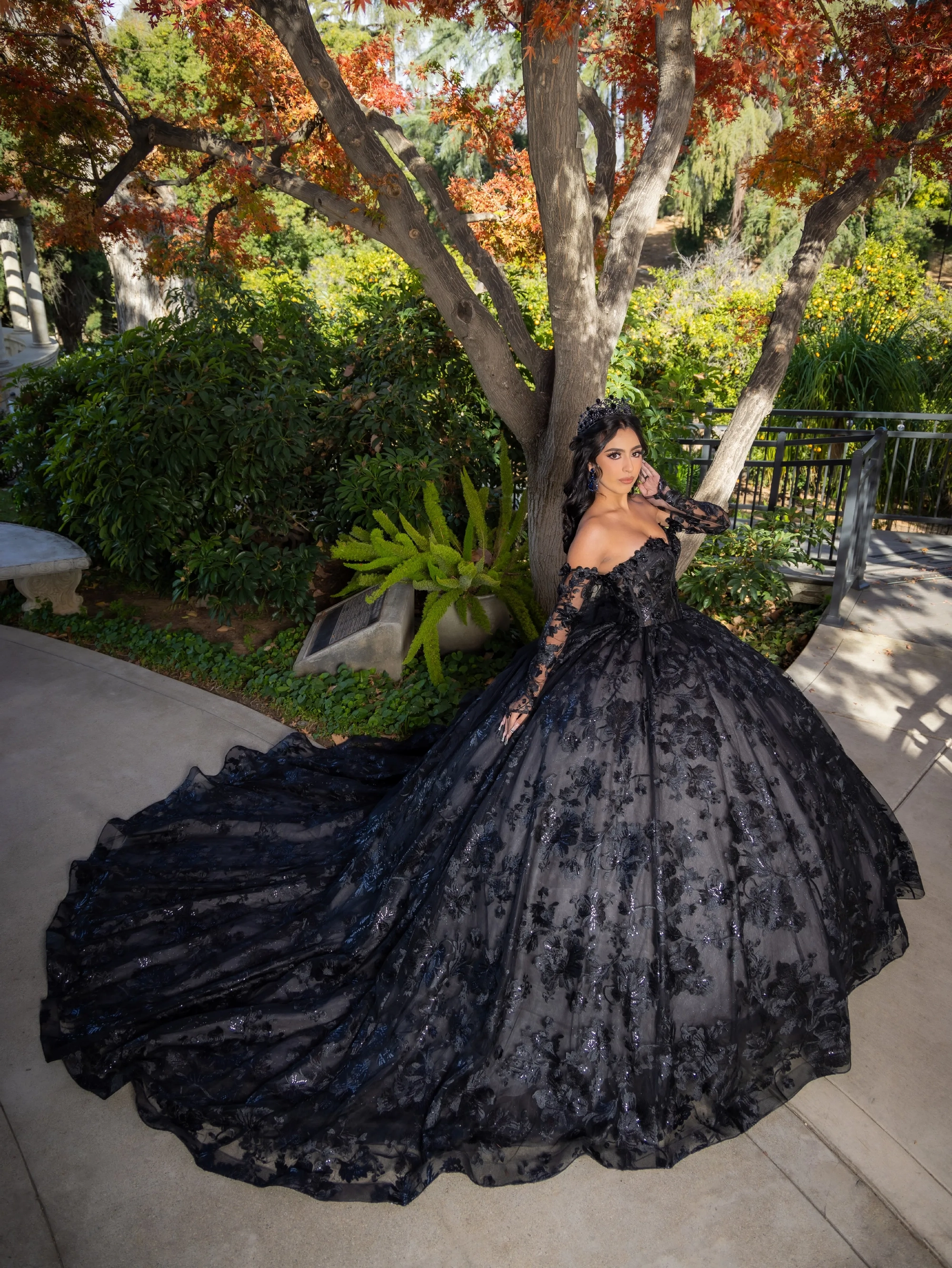 This Quinceanera gown is everything you need to bring your garden fantasies to life. The sweetheart neckline and corseted sheer bodice are decorated with a beautiful array of delicate flowers that add to its overall charm. The full royal ball gown skirt is the highlight of the dress, making it the perfect choice for your special day. A lace-up back completes this look.